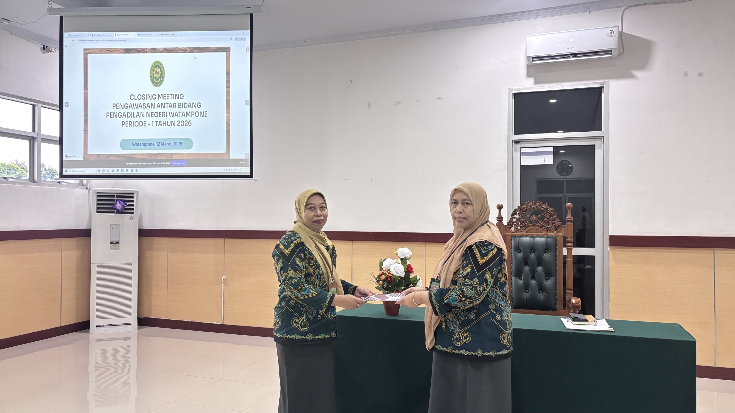 Watampone, 12 Maret 2026 – Pengadilan Negeri Watampone melaksanakan Closing Internal Assessment AMPUH sebagai meningkatkan kualitas kinerja organisasi. Dalam kegiatan tersebut disampaikan hasil evaluasi yang meliputi berbagai temuan selama pelaksanaan penilaian, sekaligus rekomendasi perbaikan yang perlu ditindaklanjuti oleh seluruh unit terkait. Rekomendasi tersebut diharapkan dapat menjadi landasan dalam melakukan pembenahan dan peningkatan secara berkelanjutan, sehingga mendukung terwujudnya penyelenggaraan peradilan yang profesional, transparan, akuntabel, serta berintegritas.