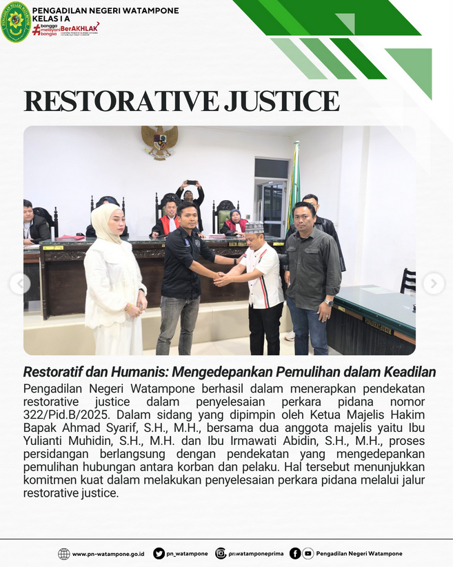 PN Watampone Sukses Terapkan Restorative Justice Perkara Nomor 322
