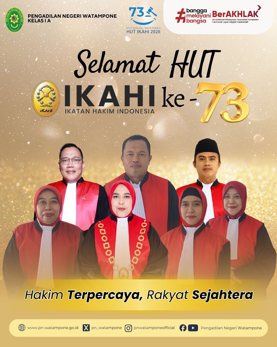 Pimpinan dan Hakim Pengadilan Negeri Watampone mengucapkan Selamat Hari Ulang Tahun IKAHI (Ikatan Hakim Indonesia) ke -73.